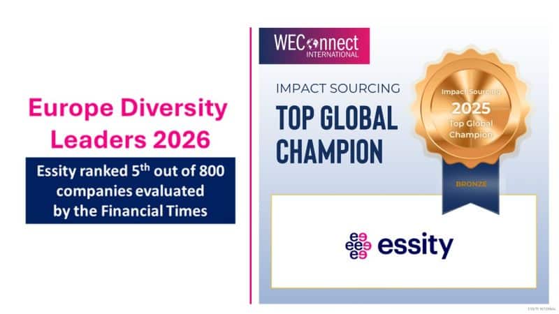 Essity was also recognized as a “Global Impact Sourcing Champion 2025” by WEConnect International, an award that celebrates organizations championing supplier diversity, including women-owned businesses. In one region, Essity achieved a 27% increase in spending with small and diverse suppliers, reflecting its inclusive procurement strategy.
