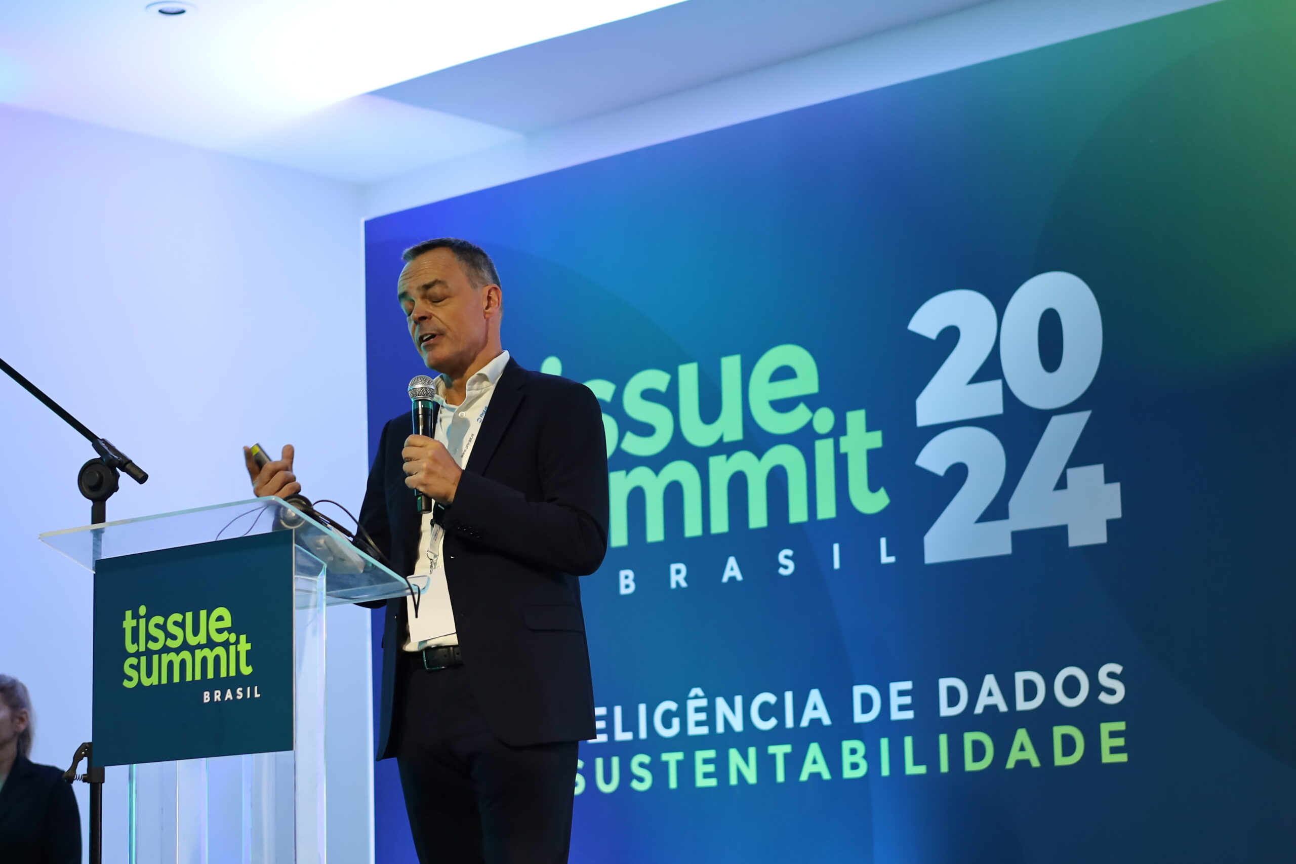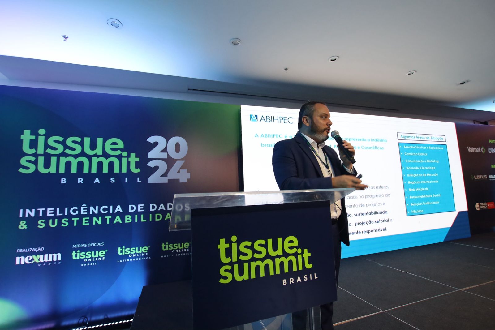 To end the cycle of presentations at the Tissue Summit, the last talk of the day was given by Fábio Brasiliano, Environmental Director of Abihpec (Brazilian Association of the Personal Hygiene, Perfumery and Cosmetics Industry), who addressed “Climate change and challenges in the HPPC sector”.